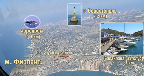 Участки находятся в десяти километрах от центра Севастополя, в 15 мин. езды до Балаклавы (яхт-клуб, рестораны, живая музыка). 20 км до аэропорта Бельбек (бывший военный, в настоящий момент развивающийся гражданский аэропорт). 10 км до Севастополя. 80 км до Симферополя.